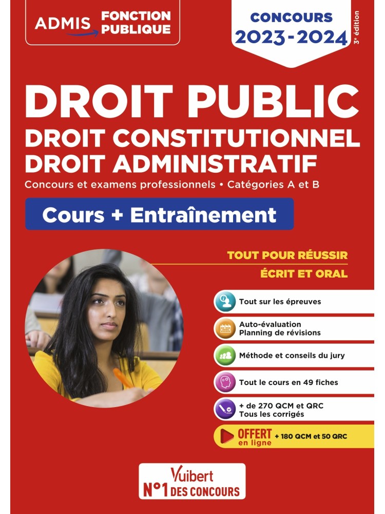 Tout ce qu'un candidat doit savoir pour russir les preuves en lien avec le droit public dans les diffrents concours A et B de la fonction publique ! Tout ce que le candidat doit savoir en lien avec le droit public pour russir son concours : - 13 fiches sur le droit constitutionnel ; - 12 fiches sur le droit administratif ; - 12 fiches sur les finances publiques ; - 12 fiches sur les institutions europennes. L'ouvrage propose une prparation complte travers : - Un QCM d'auto-valuation pour cibler ses rvisions ; - Un planning de rvisions pour organiser sa prparation ; - Une mthode avec les bons rflexes adopter ; - Toutes les connaissances indispensables matriser ; de 250 QCM et QRC corrigs pour s'entraner.