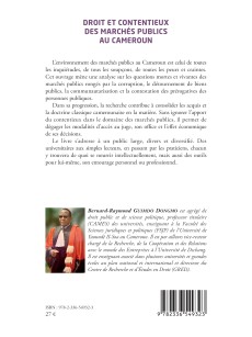 L’environnement des marchés publics au Cameroun est celui de toutes les inquiétudes, de tous les soupçons, de toutes les peurs et craintes. Cet ouvrage mène une analyse sur les questions mortes et vivantes des marchés publics rongés par la corruption, le détournement de biens publics, la communautarisation et la contestation des prérogatives des personnes publiques.Dans sa progression, la recherche contribue à consolider les acquis et la doctrine classique camerounaise en la matière. Sans ignorer l’apport du contentieux dans le domaine des marchés publics, il permet de dégager les modalités d’accès au juge, son office et l’effet économique de ses décisions.Le livre s’adresse à un public large, divers et diversifié.