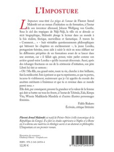L'Imposture sous-titré Les pièges de l'amour de Florent Armel Malembi est un roman d'initiation ou de formation. Sous le ciel des tropiques de Ndji-Ndji, la ville où se déroule ce récit biographique, Malembi plonge le lecteur dans un monde à la fois réaliste, féerique, merveilleux et fantastique. À travers les « Comment... » - huit véritables questionnements philosophiques qui bâtissent les chapitres en enchâssement -, la jeune Lessika, protagoniste-héroïne, nous aide à saisir le récit en nous édifiant sur les différentes péripéties de ses formations avant de se lancer dans une aventure, car « il fallait agir, penser, voire parler comme son arrière-grand-mère Lessika » qu'elle incarnait désormais. (Fidèle Biakoro)