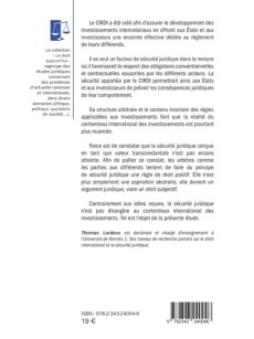 Le CIRDI a été créé afin d'assurer le développement des investissements internationaux en offrant aux États et aux investisseurs une enceinte effective dédiée au règlement de leurs différends. Il se veut un facteur de sécurité juridique dans la mesure où il favoriserait le respect des obligations conventionnelles et contractuelles souscrites par les différents acteurs. La sécurité apportée par le CIRDI permettrait ainsi aux Etats et aux investisseurs de prévoir les conséquences juridiques de leur comportement. Sa structure arbitrale et le contenu incertain des règles applicables aux investissements font que la réalité du contentieux international des investissements est pourtant plus nuancée. Force est de constater que la sécurité juridique conçue en tant que valeur transcendantale n'est pas encore atteinte. Afin de pallier ce constat, les arbitres comme les parties aux différends tentent de faire du principe de sécurité juridique une règle de droit positif. Elle n'est plus simplement une aspiration abstraite, elle devient un argument juridique, voire un droit subjectif. Contrairement aux idées reçues, la sécurité juridique n'est pas étrangère au contentieux international des investissements.
