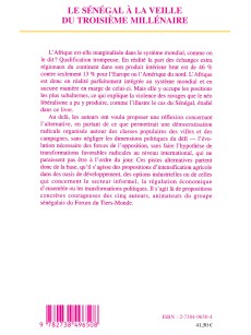 L'expérience de l'Afrique contemporaine en général comme celle du Sénégal en particulier constituent des exemples tragiques des ravages produits par la pensée économique dominante. Ce livre en analyse les mécanismes et propose en contrepoint des alternatives concrètes. Cette analyse concerne tant l'agriculture, l'industrie, la macro-économie, et la politique par laquelle s'exprime les intérêts dominants et les moyens de résistance des dominés.