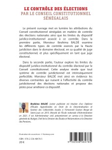 Le présent ouvrage met en lumière les attributions du Conseil constitutionnel sénégalais en matière de contrôle des élections nationales ainsi que les limites du dispositif juridico-institutionnel associé à ce contrôle. Dans la première partie, Monsieur Ibrahima BALDÉ examine les différents types de contrôle exercés par la Haute juridiction dans le domaine électoral, en sa qualité de juge constitutionnel, et plus spécifiquement en tant que juge électoral.