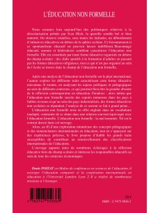 L'éducation non formelle est constituée par toute forme éducative organisée en dehors du champ scolaire : des clubs sportifs à la formation d'adultes en passant par les formes éducatives religieuses, tout ce qui n'est pas organisé au sein de l'école se trouve dans le champ de l'éducation non formelle. Après une analyse de l'éducation non formelle sur le plan international, l'auteur explore mes différents traits caractérisant cette forme éducative méconnue.