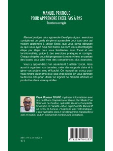 Vous y apprendrez non seulement à utiliser Excel, mais aussi à organiser vos données, créer des rapports clairs et à gérer vos projets avec efficacité. Ce manuel est conçu pour vous rendre autonome et à l'aise avec Excel, en vous donnant toutes les clés pour utiliser ce logiciel de manière efficace et productive .