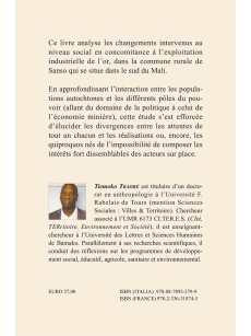 Ce livre analyse les changements intervenus au niveau social en concomitance à l'exploitation industrielle de l'or, dans la commune rurale de Sanso qui se situe dans le sud du Mali. Son auteur s'est efforcé d'élucider les divergences entre les attentes de tout un chacun et les réalisations ou, encore, les quiproquos nés de l'impossibilité de composer les intérêts fort dissemblables des acteurs sur place.
