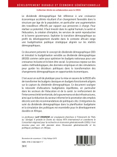 Ce document prĂ©sente le concept de dividende dĂ©mographique (DD) et introduit la budgĂ©tisation sensible au dividende dĂ©mographique (BSDD) comme cadre pour optimiser les budgets nationaux pour une croissance inclusive et le bien-ĂȘtre social. Ce processus repose sur des cadres mĂ©thodologiques, des donnĂ©es empiriques et des simulations