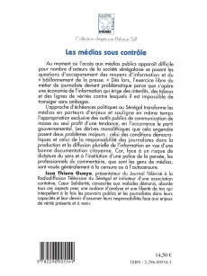 L'approche d'échéances politiques au Sénégal transforme les médias en porteurs d'enjeux et souligne en même temps l'appropriation exclusive des outils publics de communication de masse au seul profit du parti gouvernemental. Face à un risque de dictature du sens et à l'institution d'une police de la pensée, les professionnels du commentaire, que sont les gens de médias, sont voués généralement à la censure ou à l'autocensure. L'auteur, présentateur de journal télévisé, aborde ces aspects avec une audace d'analyse et une liberté de ton qui interpellent.